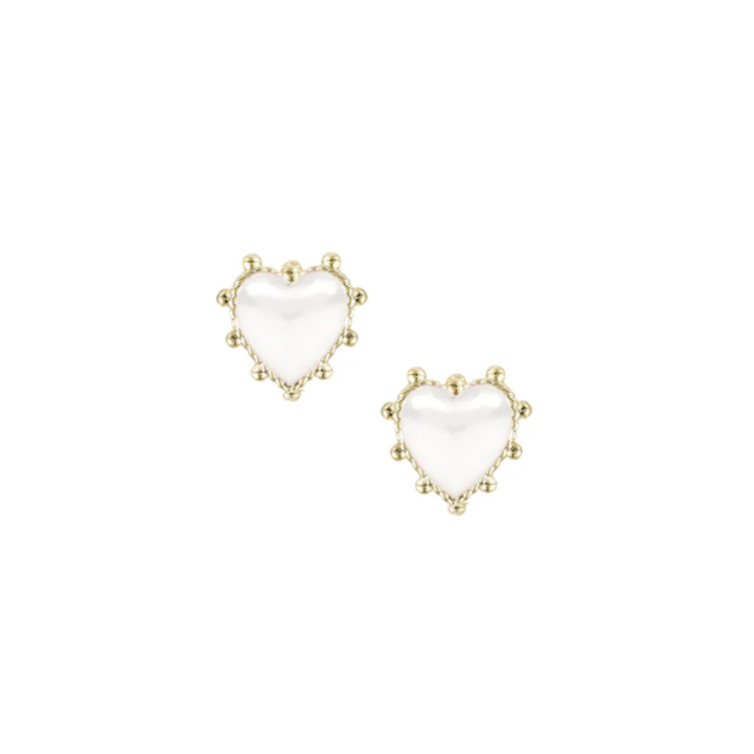 Adorned Heart Stud Earring in White Enamel