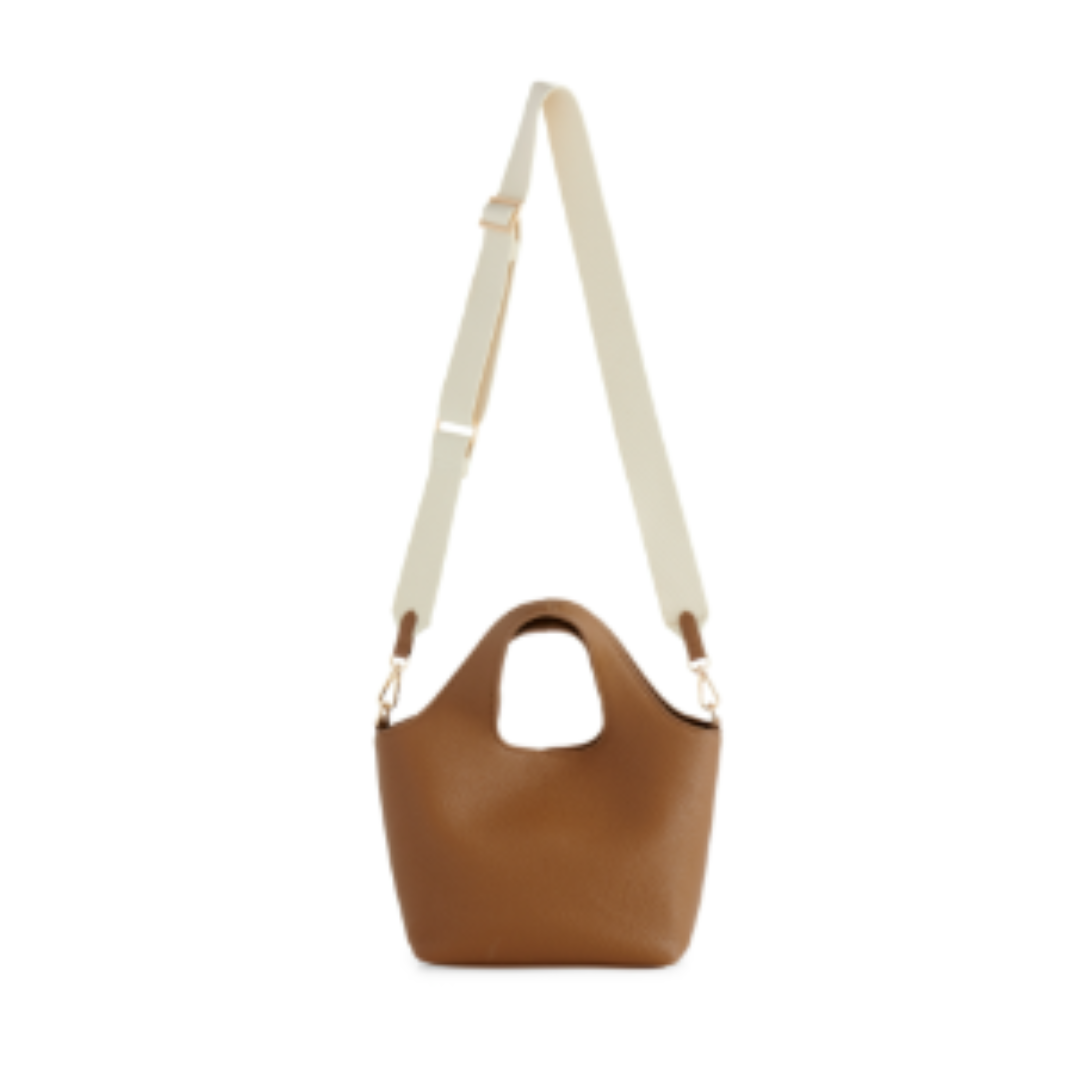 pebble grain pu; gold hardware; magnetic snap closure; double handles; detachable, adjustable cross-body strap; 1 inner zip pocket, 1 inner slip pocket