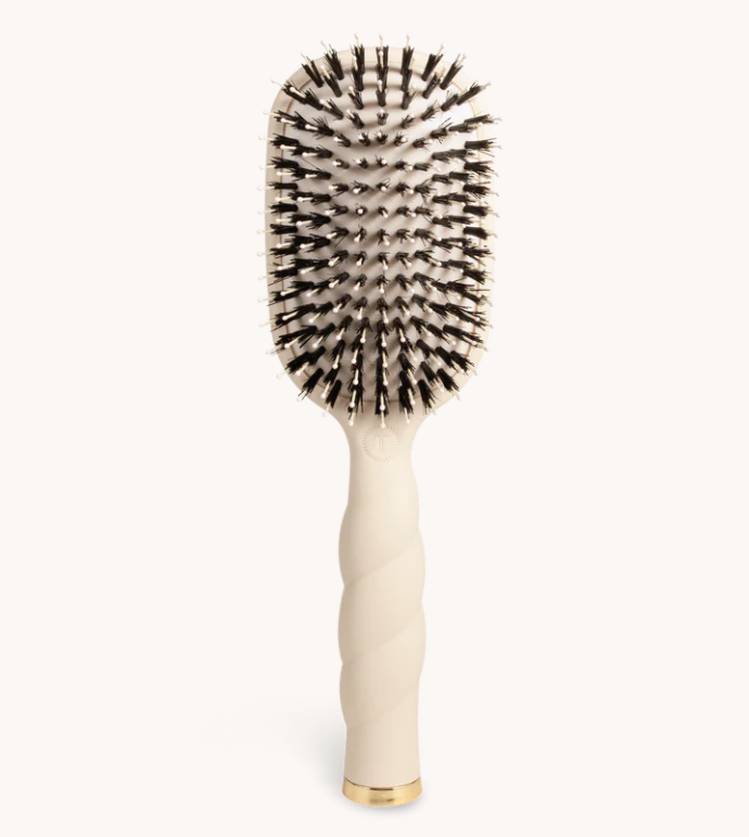 The Boar Bristle Brush in Tan brings effortless shine and frizz control to every stroke. The natural boar bristles smooth strands, distributes oils, and boosts shine from root to tip. Made with 60% nylon and 40% boar bristles, our boar hair brush is ideal for sleek styles, short hair, edge control, and men’s grooming.