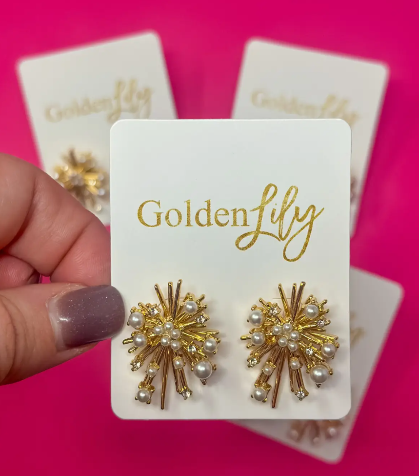Burst Stud Earrings- Rhinestone and Pearl