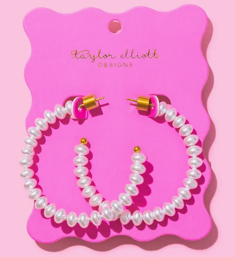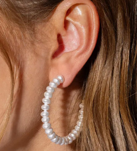 * Earring size: 2.16" diameter * Backer card size: 2.75" x 3.5" * 14k gold plated with pearls * Surgical stainless steel * Hypoallergenic * Lightweight * Nickel and lead free