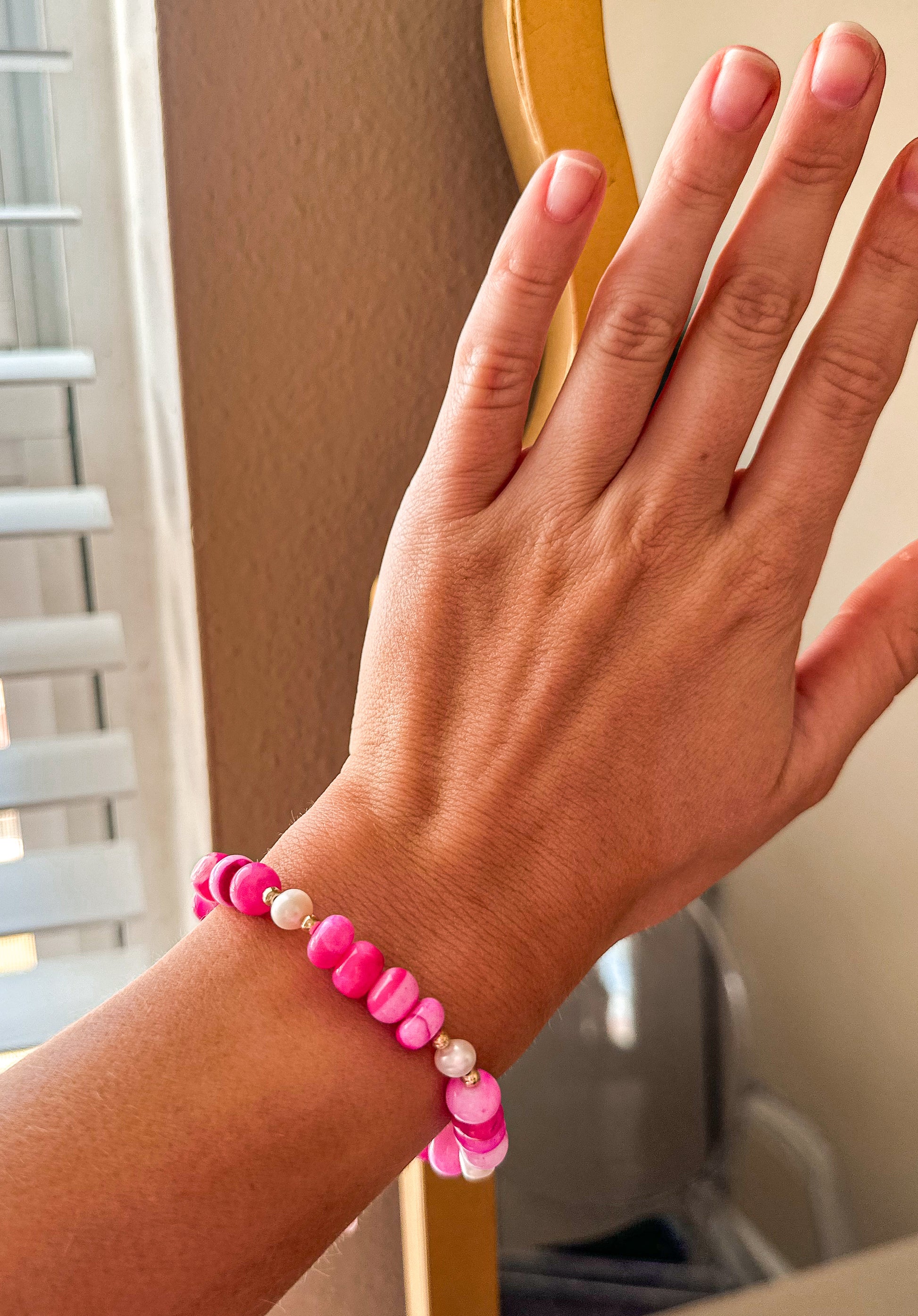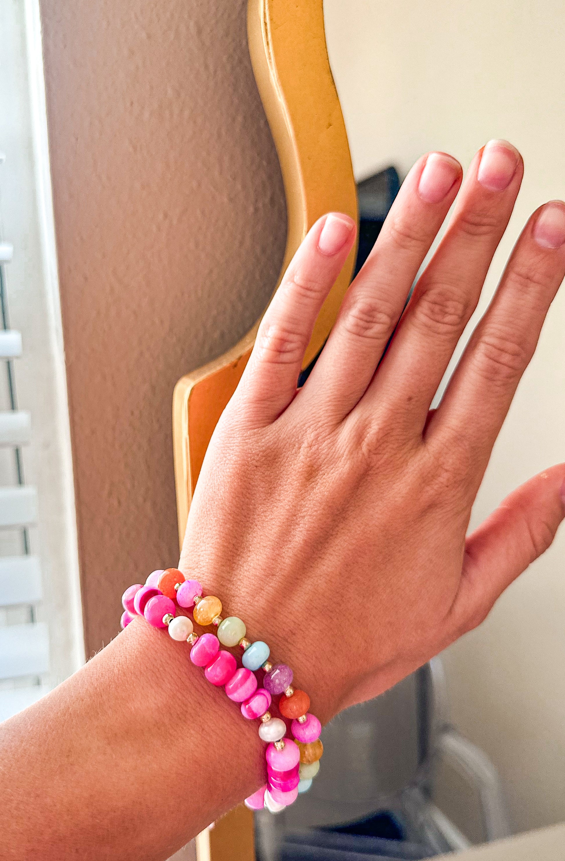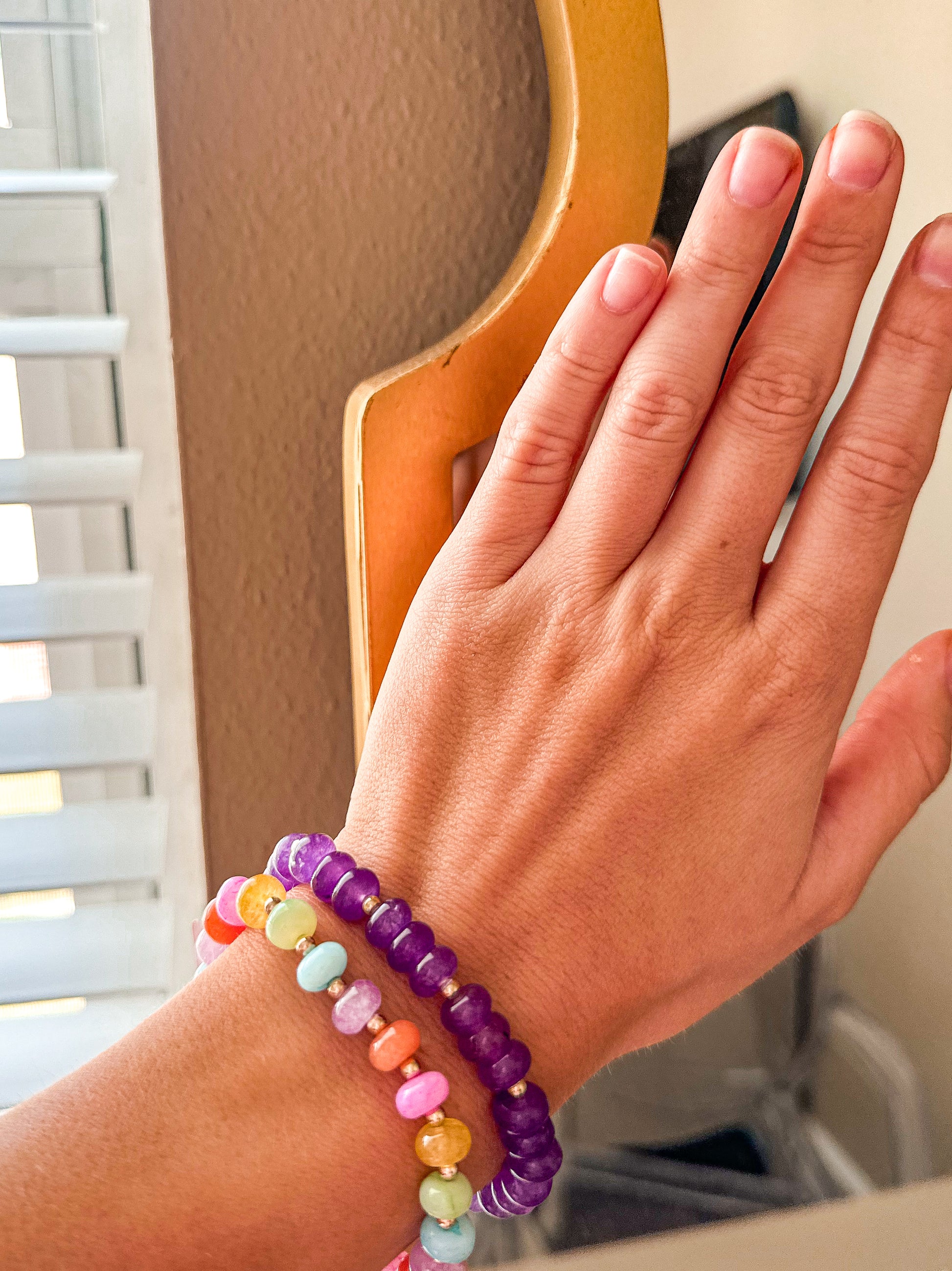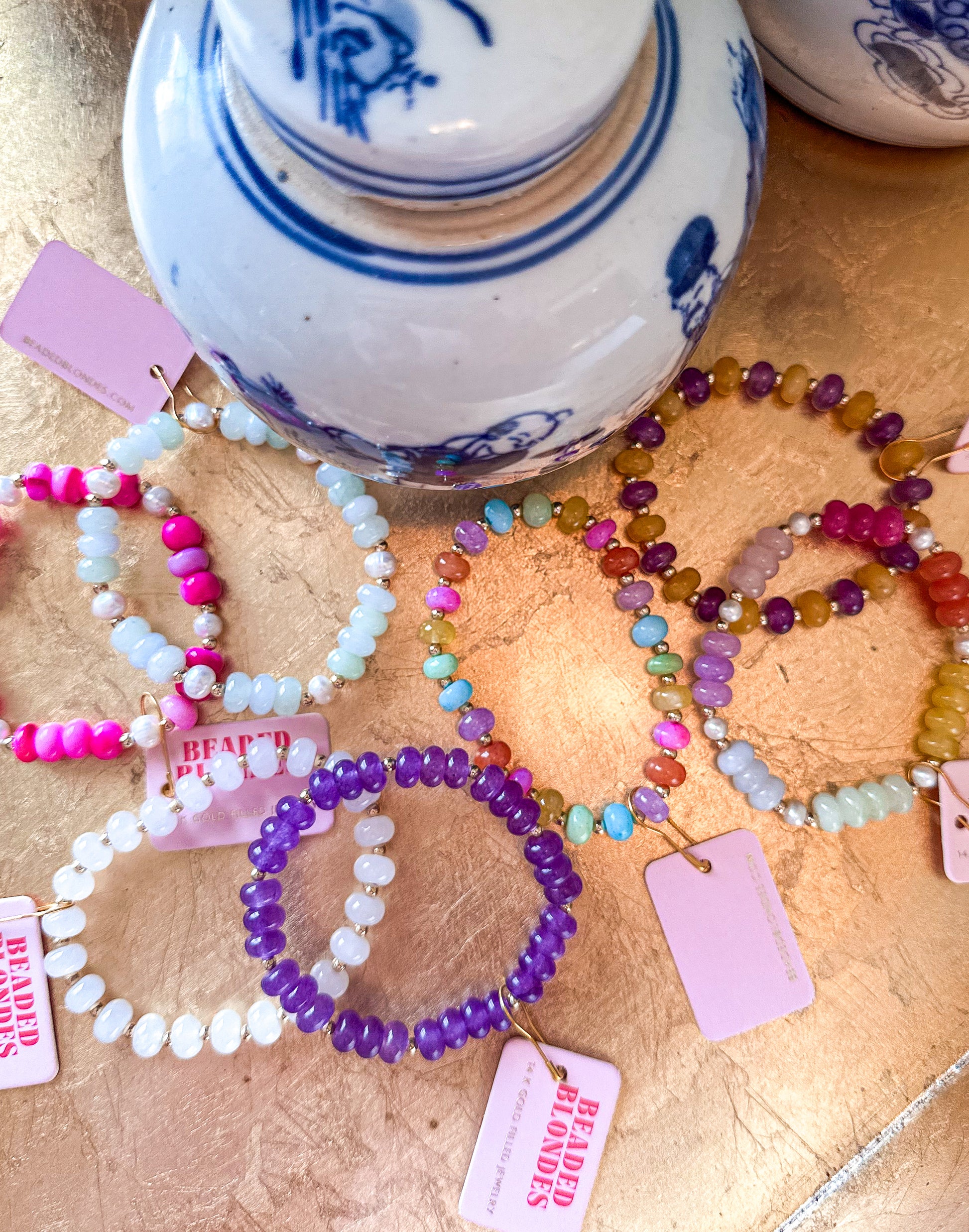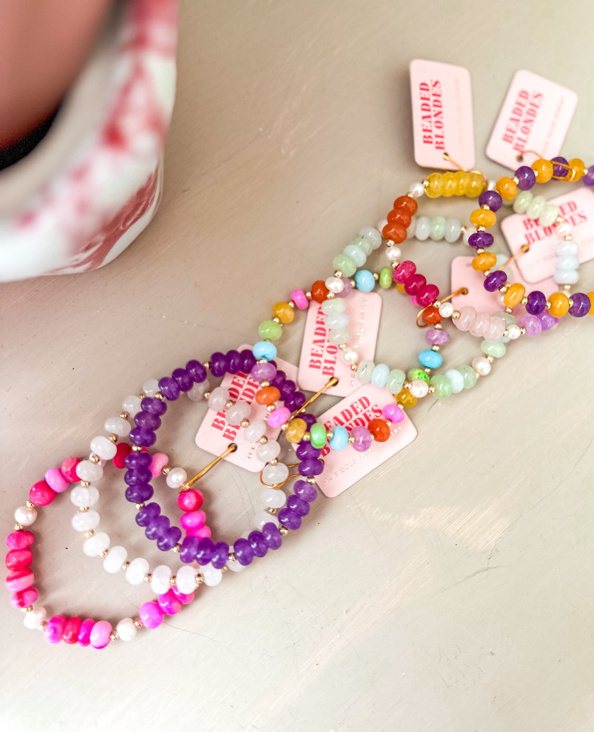 Our Natural Gemstone Beaded bracelet injects a vibrant and fun vibe into any stack, elevating your look. Mix and match it with Beaded Blondes gold or pearl necklaces.