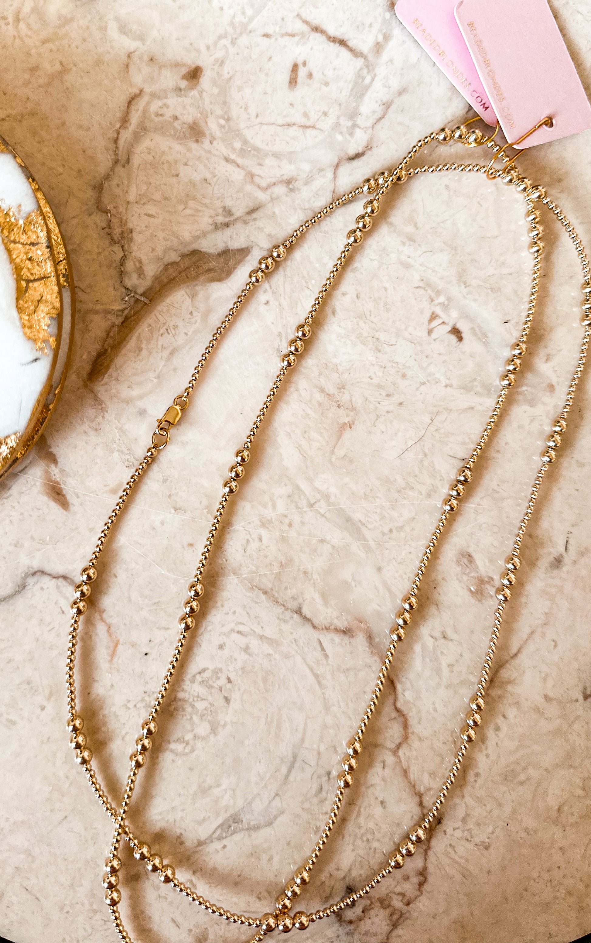 Tell someone you love them with our ILY (I love you) necklace. This is a mix of 2mm & 4mm 14 K gold filled beads. There are 3 beads to symbolize I love you.