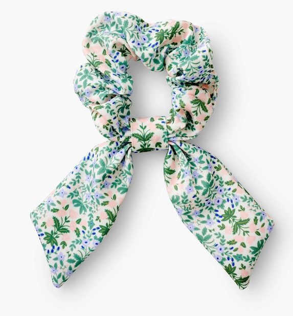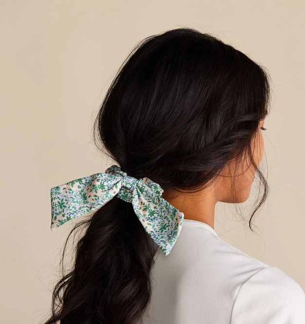 Perk up a ponytail or adorn your wrist. Our new scrunchie features our charming Lottie florals and a pretty scarf tie.